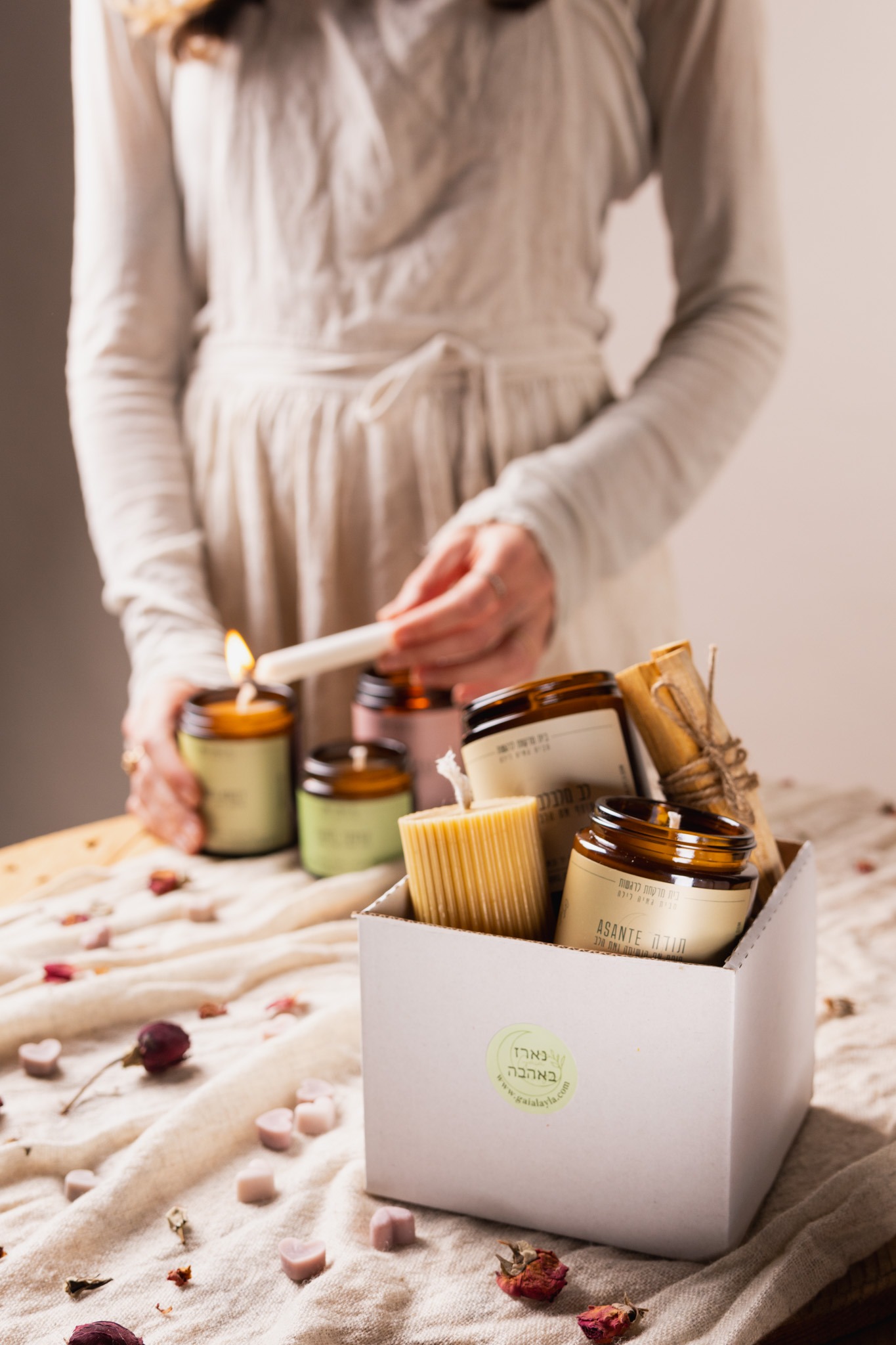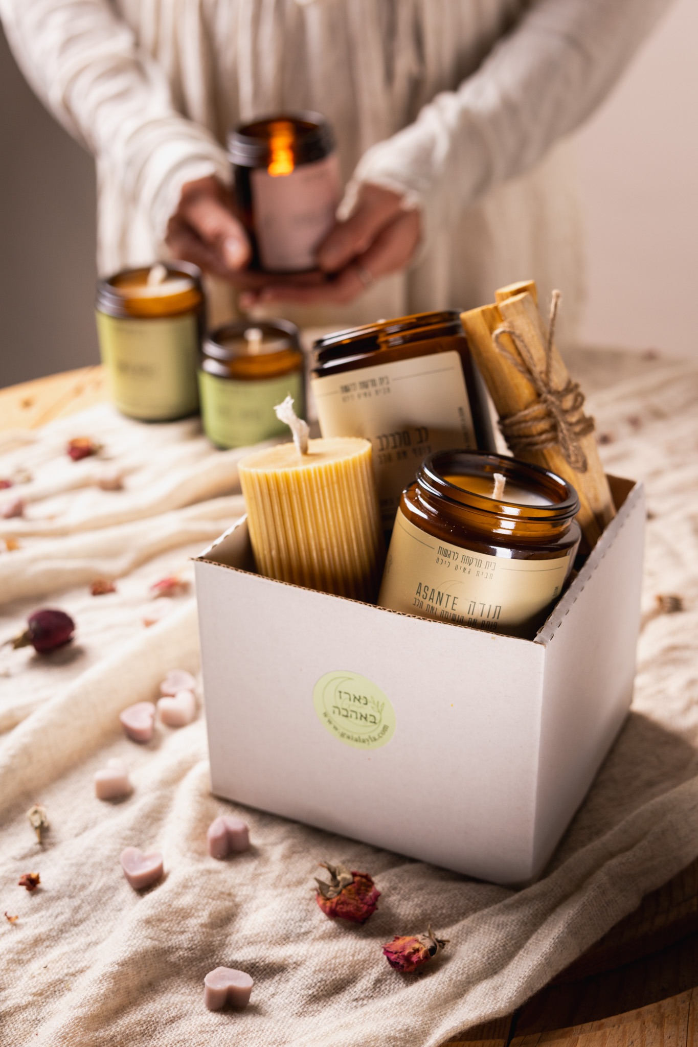 *ניתן לציין במעמד ההזמנה בהערות באיזה ריחות רוצים את הנרות ממבחר הנרות הקיים בעמודים "נרות משעוות סויה וקוקוס".