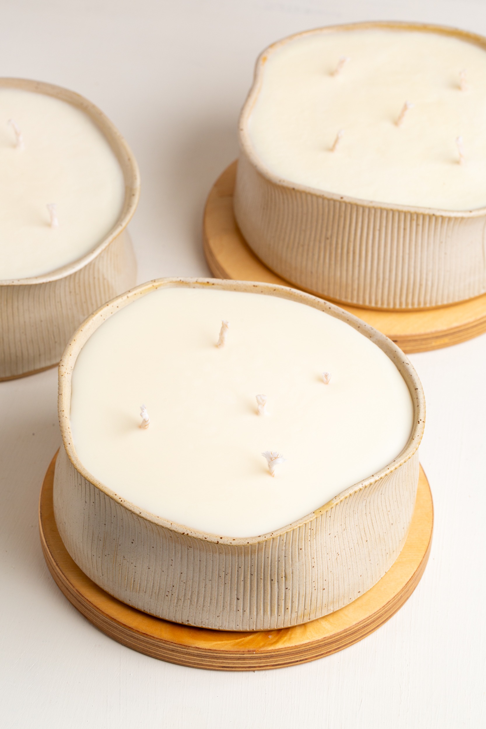 נרות טבעיים משעוות סויה וקוקוס בתוספת שמנים אתרים לבחירתכם ממבחר 8 הסינרגיות של גאיה לילה.